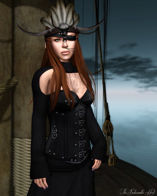 I’ve got this pirate-themed event I have to attend, which led me on this whole pirate searching odyssey, Perhaps I was looking in the wrong places, but I came to the realization that I could not find any that I liked, until I stumbled on to Cellar Door store, as well as the We ❤ Role-Play event happening now. The outfit is a bit of an amalgam of a couple different outfits from Cellar Door. You need to check out the store. Complete original mesh role play outfits for only $100L. They include everything….every.thing and are so well-done. I bought the entire store. The hair is new from Analog Dog and available at the We ❤ Role-Play event happening now. The eye patch is unisex and a free gift available there as well. Ah-hoy.