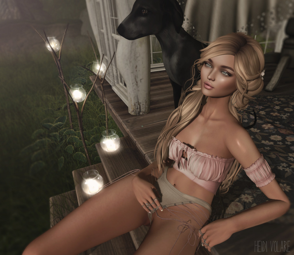 This photo shoot was a total look of the day for me. The shorts and top from miss chelsea for Uber are fat pack worthy and stupid hot. Perfect for showing off what the good Lindens gave you. I am also really loving the branch candles from anc at Uber. I’ve scattered them about at my house to lend a bit of shimmer and glitter to the summer scape.
